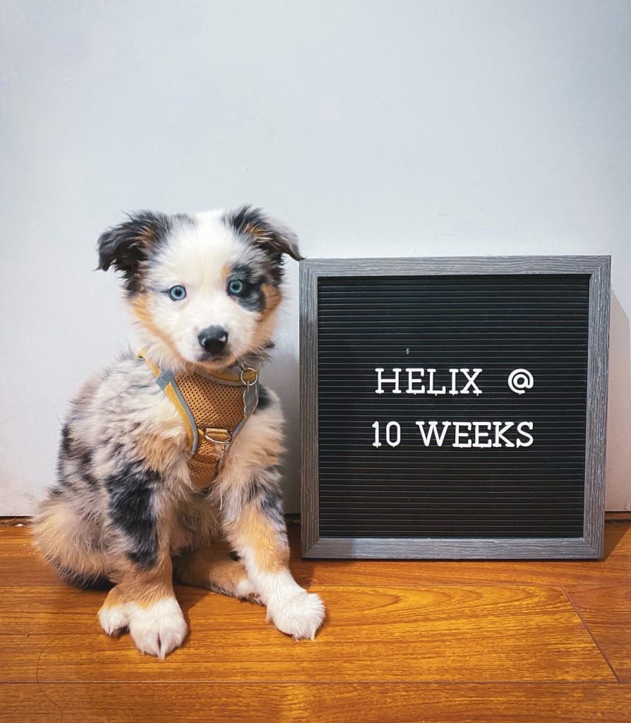 I love to play and always have a mischievous look in my eyes. If you hold me on my back, I will lay very still if you promise to rub my belly. I give plenty of kisses, so you don’t have to wash your face. HELIX is house trained, outdoor familiarized